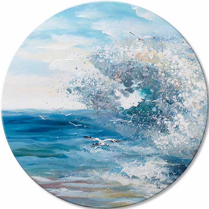 Okrogle slike, ki se razlikujejo od tradicionalnih pravokotnih oblik, dodajo element tekočnosti in vizualne neskončnosti vsaki notranjosti. Njihova edinstvena oblika širi meje tradicionalnega dojemanja umetnosti, odpira nove možnosti kompozicije in oblikovanja ter v vaše domove in pisarne vnaša dinamiko in svežino.