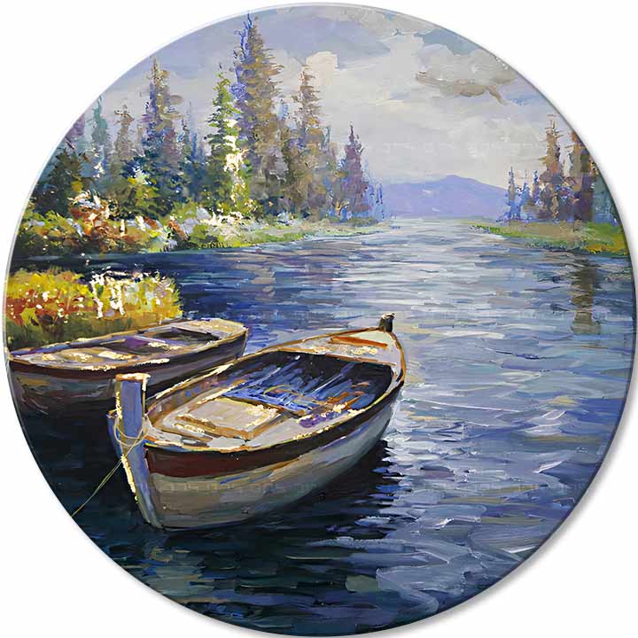 Okrogle slike, ki se razlikujejo od tradicionalnih pravokotnih oblik, dodajo element tekočnosti in vizualne neskončnosti vsaki notranjosti. Njihova edinstvena oblika širi meje tradicionalnega dojemanja umetnosti, odpira nove možnosti kompozicije in oblikovanja ter v vaše domove in pisarne vnaša dinamiko in svežino.