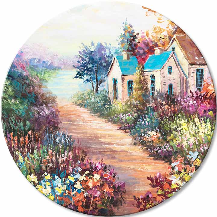 Introduction » Okrogle slike » Okrogla poslikana slika babičine hiše | 60 cm