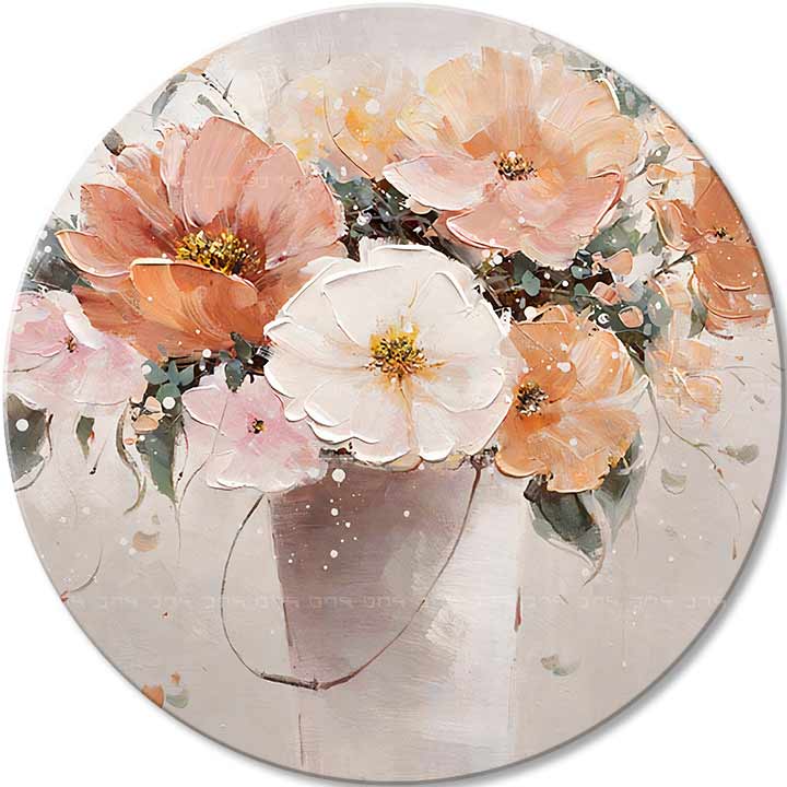 Okrogle slike, ki se razlikujejo od tradicionalnih pravokotnih oblik, dodajo element tekočnosti in vizualne neskončnosti vsaki notranjosti. Njihova edinstvena oblika širi meje tradicionalnega dojemanja umetnosti, odpira nove možnosti kompozicije in oblikovanja ter v vaše domove in pisarne vnaša dinamiko in svežino.