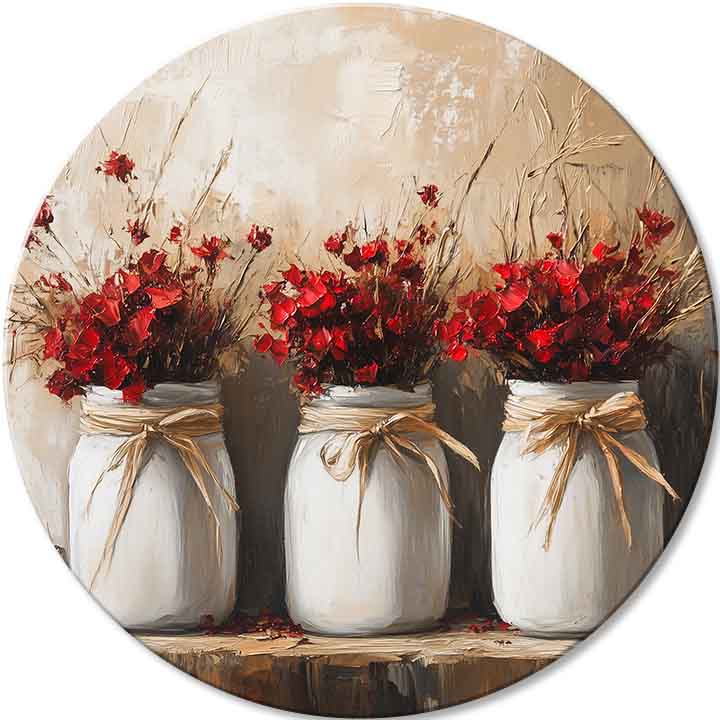 Okrogle slike, ki se razlikujejo od tradicionalnih pravokotnih oblik, dodajo element tekočnosti in vizualne neskončnosti vsaki notranjosti. Njihova edinstvena oblika širi meje tradicionalnega dojemanja umetnosti, odpira nove možnosti kompozicije in oblikovanja ter v vaše domove in pisarne vnaša dinamiko in svežino.